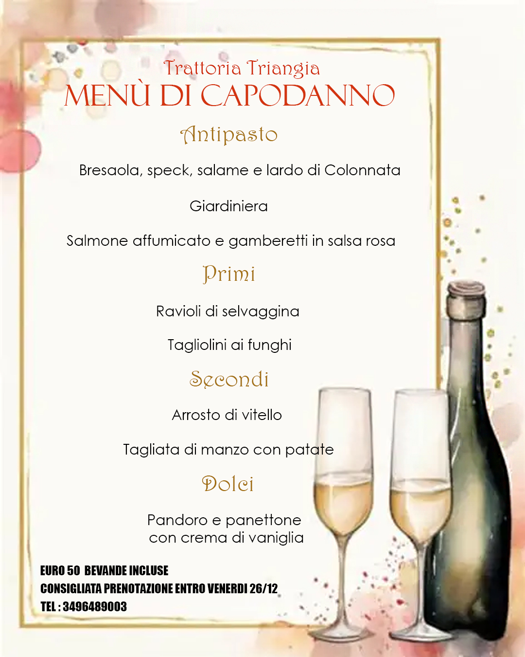 La disponibilità della trattoria è di 30 coperti.