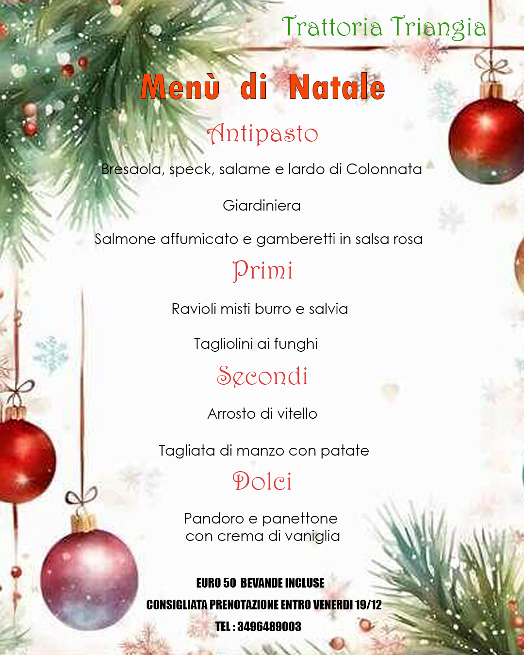Da mercoledì a venerdi aperto ristorante solo su prenotazione.